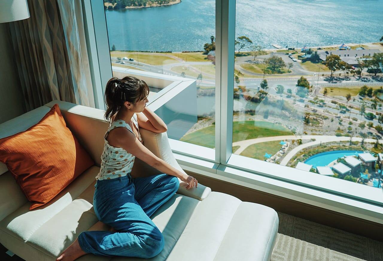 スワン川とパースの街が一望できる6つ星ラグジュアリーホテル。部屋から景色を楽しんだり、プールでのんびり過ごしたり、パースタイムをゆっくりと感じてステイしたい人におススメです。