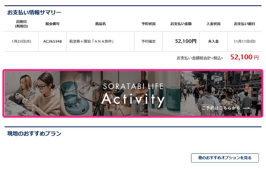 フライト+ホテルの予約完了後、別途予約が必要です。