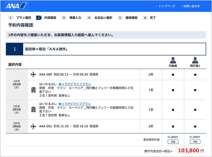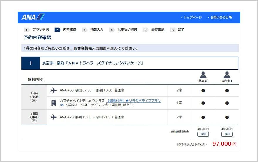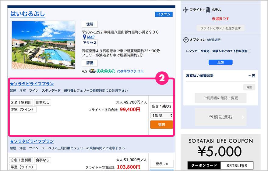 ホテルプランまで選択すると現在の選択内容が表示されます。