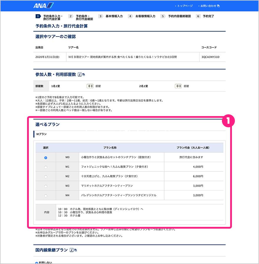 (この画面では参加人数が大人1名になっているのでご注意ください。)
