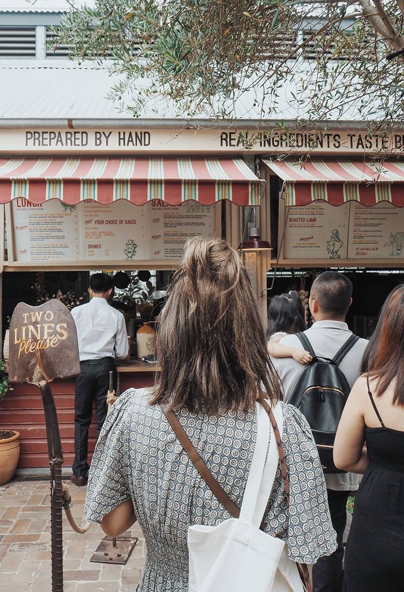 ランチは人気エリアの通称”Grounds”へ。ハンバーガーとドリンクをテイクアウトして、シドニーの風を感じながらオープンエアでいただきます♡敷地内の装飾はシーズンによって入れ替わるので、どんなデコレーションに出会えるかはお楽しみに!