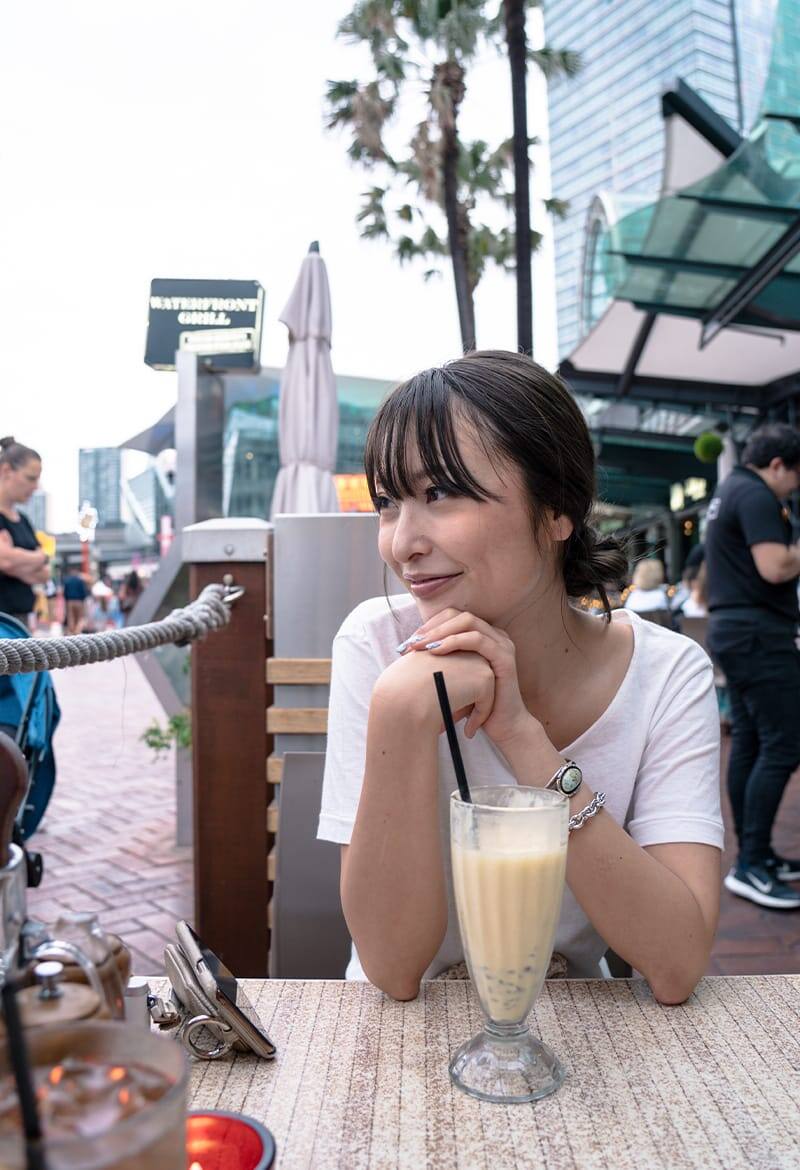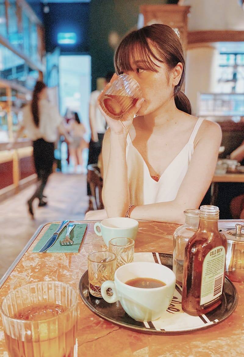 カフェでほっとひと息。2人がチョイスしたのは、1つのコーヒーをアイス/ホット/エスプレッソで楽しめるテイスティングメニュー。同じ豆なのに、味わいが変わるのが驚き!