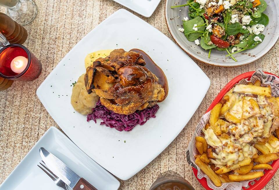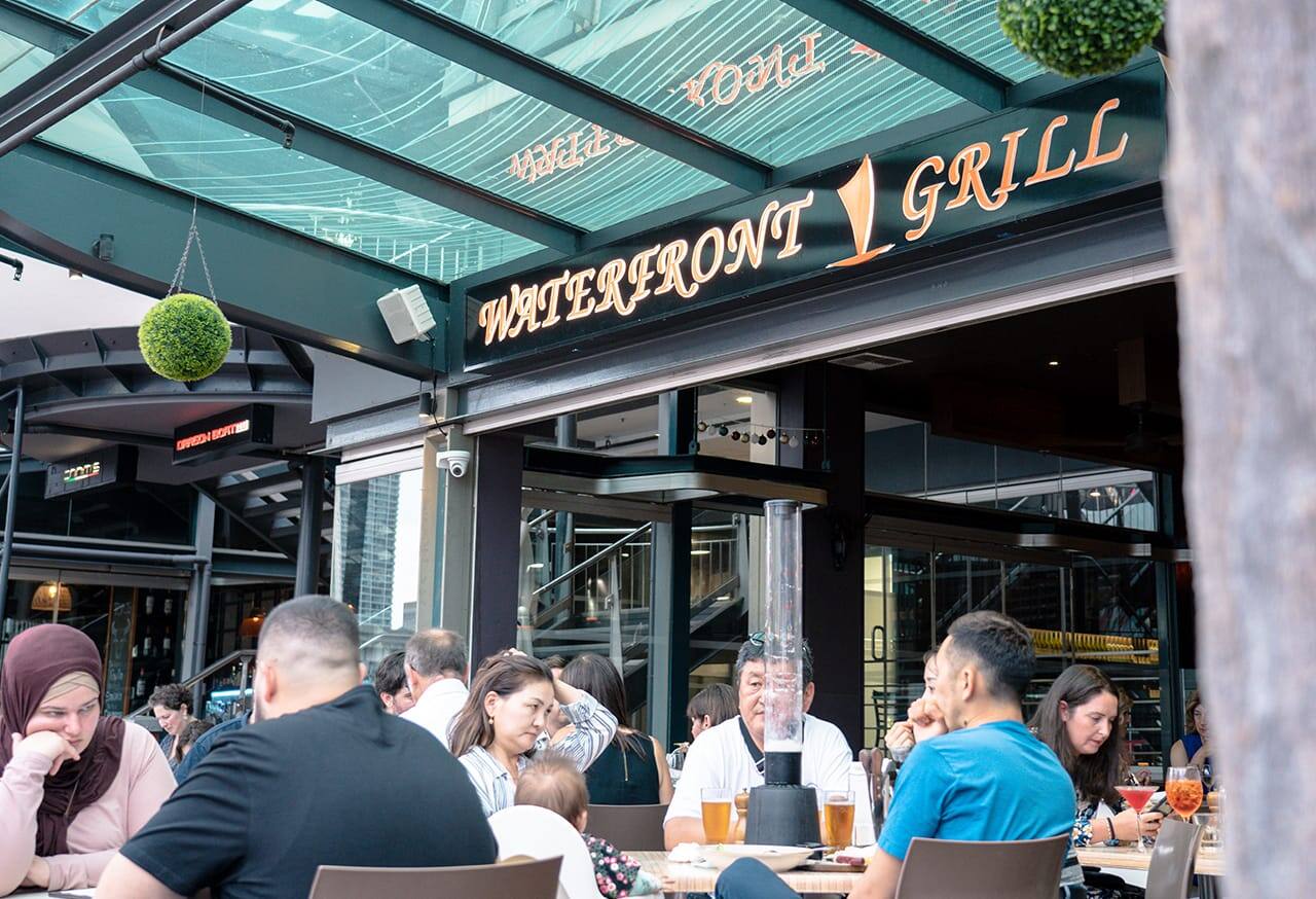 ハーバー近くのオープンテラスディナーは、夜景も楽しめるから早めのスタートで夕暮れ時から2度景色を楽しむのもいいかも。海外らしさを感じられるボリューミープレートなのでシェアがおススメ。