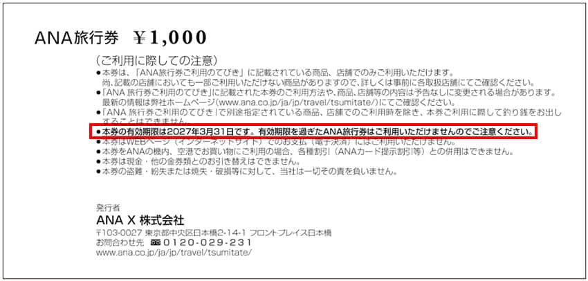 有効期限が過ぎたANA旅行券はご利用いただけませんので、有効期限内にご利用いただきますようお願い申し上げます。