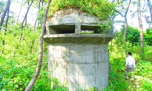 ヘリテージングとは日本の近代遺産を楽しむ観光のこと。富津岬は1881年から太平洋戦争終結の1940年代まで旧日本陸軍の砲台や射場として使われてた場所で、今も砲台跡や射場の監視所などの戦跡を気軽に見学することができます。富津岬沖の海上の人口島は、100年以上前に首都防衛のために作られた海堡(かいほう)と呼ばれた軍事施設。現地ガイドと巡る富津岬ヘリテージングも行われています。富津岬の先端にある明治百年記念展望塔からは、海堡や東京湾を航行する大型船舶などを見ることができます。