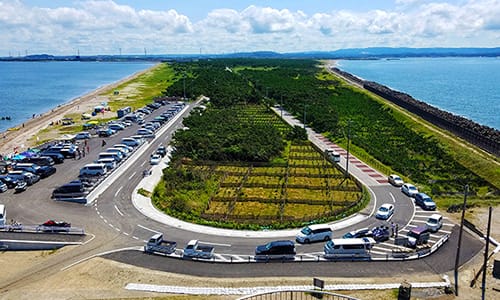 千葉県富津市のシンボル富津岬は、東京湾を見渡せる絶好のロケーション。日本の「白砂青松100選」にも選ばれ、天気が良ければ富士山に三浦半島、都心の景色をぐるっと見渡すことができます。約4キロメートルも海に突出した岬には潮干狩り場やプール・海水浴場など様々な施設があり、家族で丸1日遊べます。海岸の砂浜に広がる植物群落は千葉県の天然記念物です。