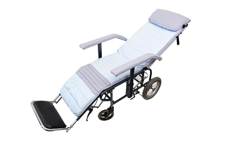 座位を保つことが困難なお客様のご案内に使用できるフルリクライニング車椅子です。