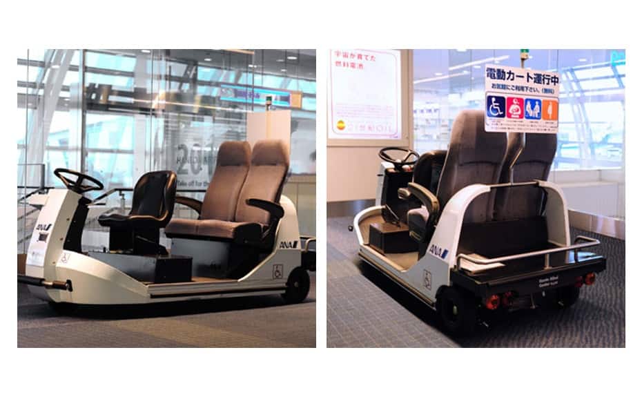 ご搭乗口までの歩行移動が不安なお客様のために、羽田空港第2旅客ターミナル出発ロビーに電動カートを2台ご用意しました。