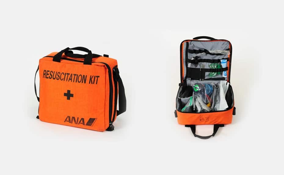 異物を除去し、気道を確保するための心肺蘇生用の医療器具や挿管セットなどで、国際線に搭載しています。