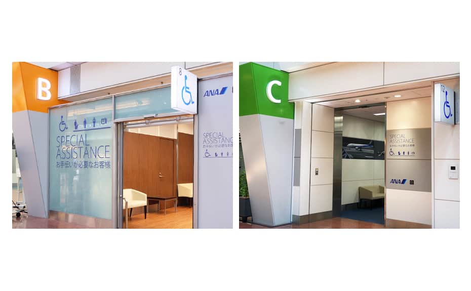 羽田空港第2ターミナル保安検査場B横およびC横にございます。病気やけが、障がいにより、お手伝いを必要とするお客様に室内カウンターをご用意。室内には休憩スペースや優先保安検査場を設置し、安心して空の旅を楽しんでいただけるようお手伝いいたします。係員へ必要なお手伝いをお知らせください。