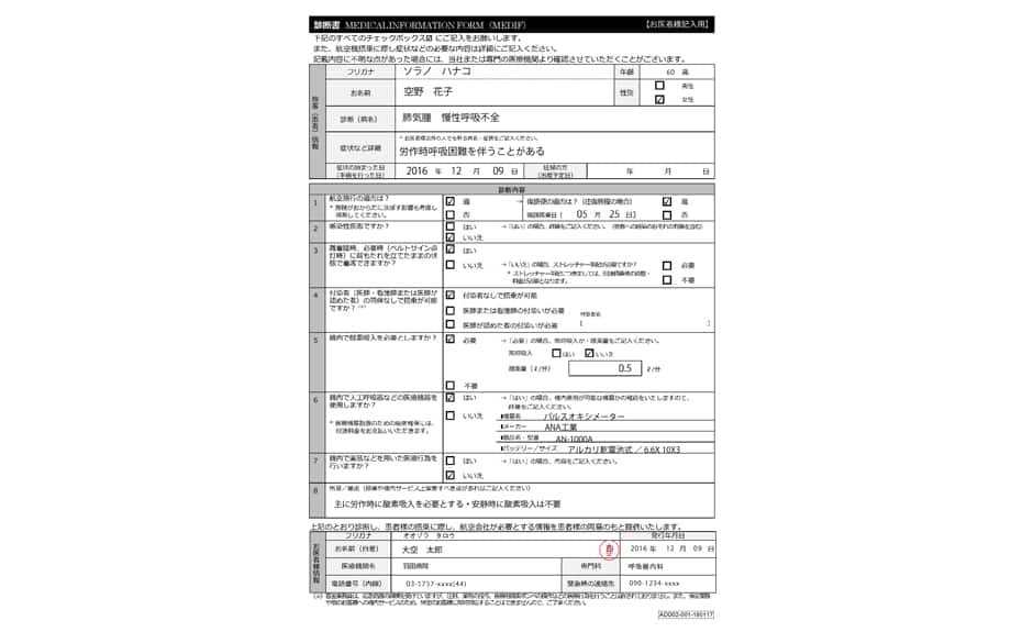 診断書は搭乗日を含め14日以内に医師により発行されたものが有効です