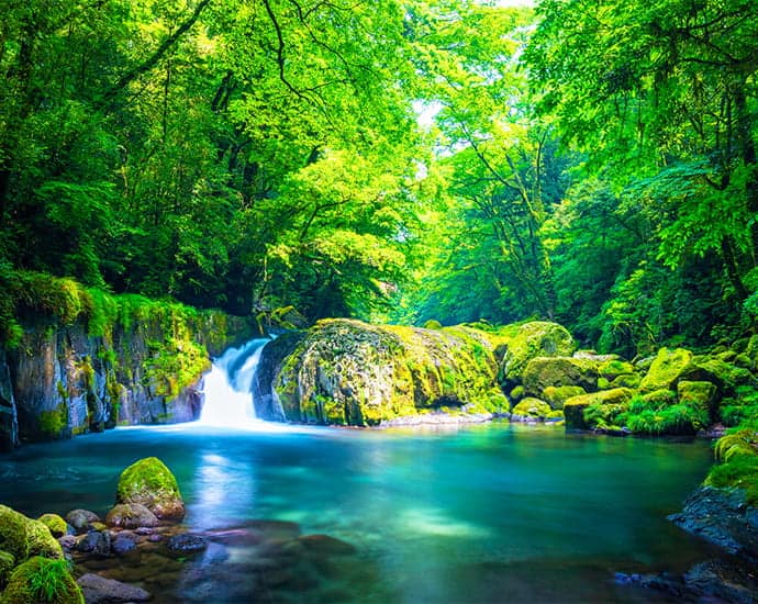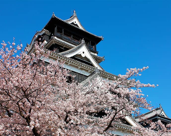 日本三名城の一つに数えられている熊本城では春になると約800本の桜を鑑賞できます。お腹が空いたら、熊本・阿蘇の雄大な自然の中で育った和牛・あか牛を贅沢に使用した丼ぶりを堪能してみて。新緑の季節には、菊池渓谷で心と体を癒しましょう。