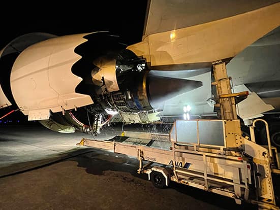 着陸後は1つのエンジンでも地上走行が可能なため、安全に実施できる場合は、片方のエンジンを止めて地上走行をすることによりCO₂排出量を削減。