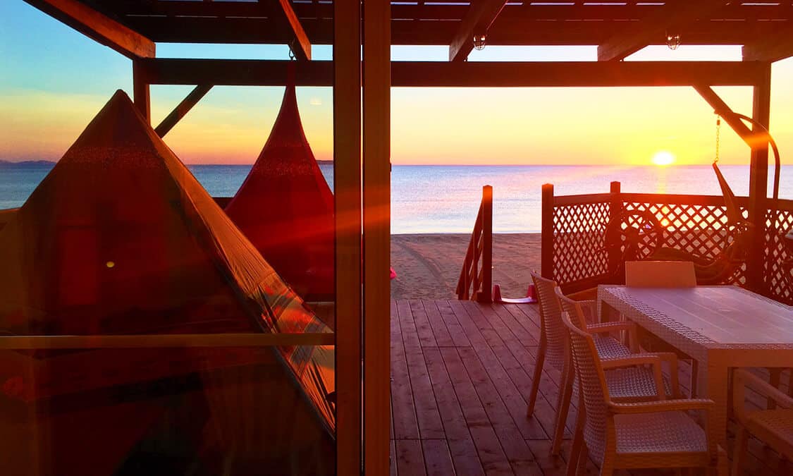 후쿠오카시에서 50분, 해변의 아웃 도어 리조트에서 본격적인 글램핑