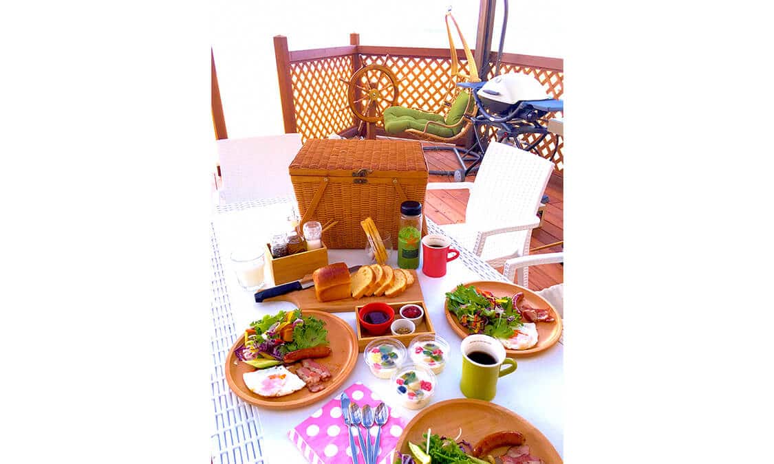 저녁 식사는 3가지 스타일 중에서 선택할 수 있습니다. 글램핑의 대표 메뉴 BBQ는 고기뿐만 아니라 바다의 진미도 즐길 수 있는 호화 메뉴. 카운터에서 바다를 보면서 신선도 최상의 초밥을 맛볼 수 있는 초밥 포장마차 '우미노이로'에, 해산물을 듬뿍 사용한 본격 코스를 맛볼 수 있는 이탈리안 레스토랑 '마르 마레' 등 선택하기 망설이게 하는 라인업입니다. 아침 식사는 직접 간단히 조리하는 스타일로 캠프 기분을 만끽할 수 있습니다.