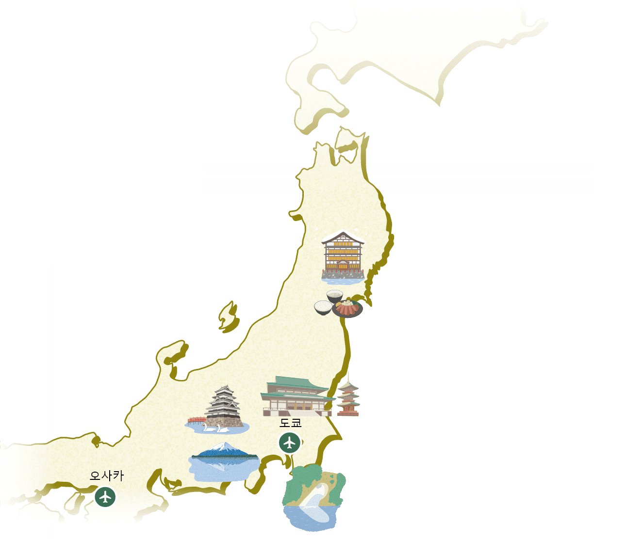 조금 체류를 연장하여 가벼운 여행을 더해 보는 것은 어떠십니까? 새로운 시대의 일본을 충분히 즐기기 위해 도쿄나 오사카에서 발걸음을 옮겨 갈 수 있는 자연이 풍요로운 플러스 여행을 소개합니다. 알려지지 않은 일본의 비경이 여러분을 기다리고 있습니다!
