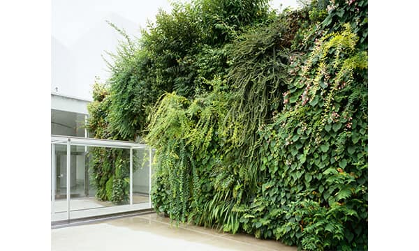 식물학자 겸 아티스트인 패트릭 블랑의 작품「Green Bridge」는 유리로 된 복도를 지나도록 만들어져 있습니다. 길이 13m, 높이 5m의 벽면이 가나자와의 기후에 적합한 약 100 종류의 식물로 뒤덮여 있으며 사계절 내내 다양한 식물이 절묘한 조화를 이루며 배치되어 있습니다. 한정적인 환경 속에서도 식물은 적응해 간다는 식물학자 블랑의 이론이 작품에 그대로 나타나 있습니다.