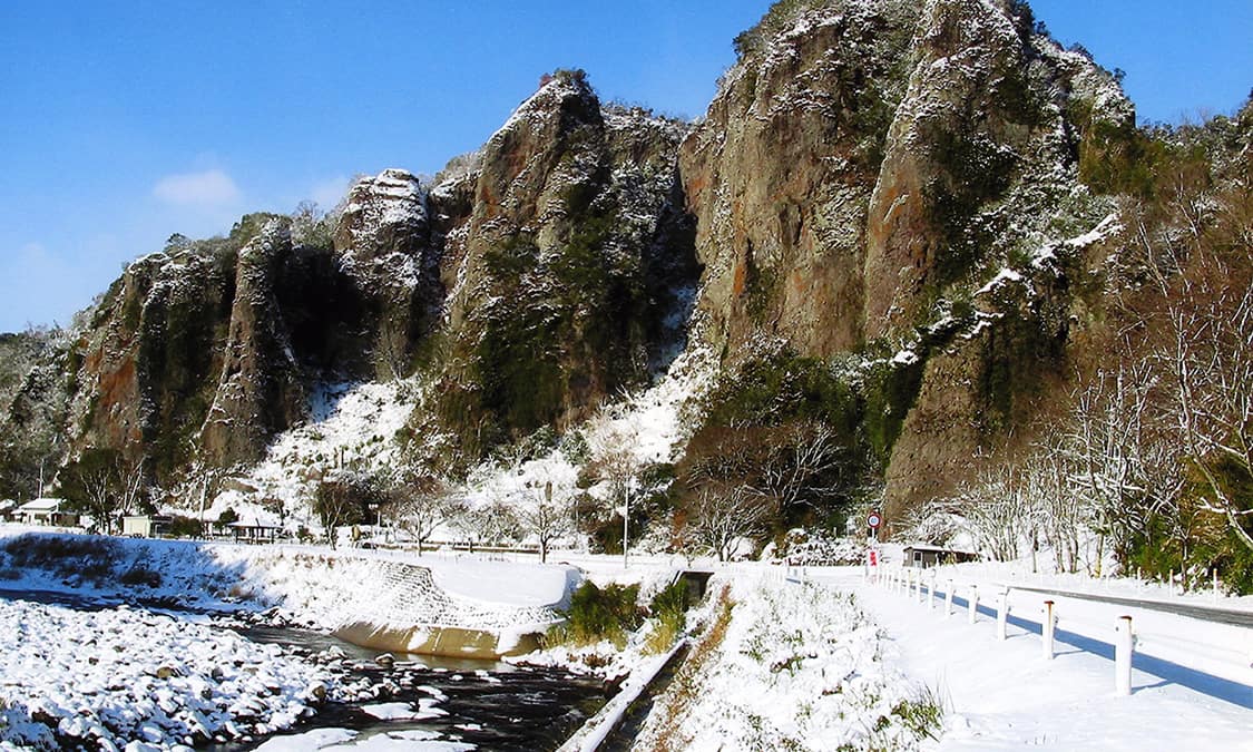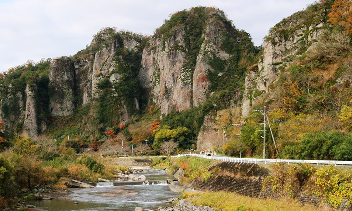 후카미가와의 청류를 내려다보는 것처럼 다양한 기암이 솟아 있으며, 담쟁이덩굴이나 덩굴풀로 뒤덮인 바위가 만들어내는 자연의 아름다움은 마치 산수화 세계입니다.봄에는 벚꽃, 가을에는 단풍, 겨울에는 설경 등 계절에 따라 다양한 경관을 즐길 수 있습니다.