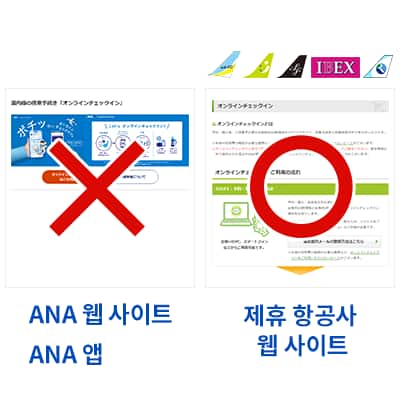 일본 국내 제휴 항공사 운항편*2의 경우, 구 시스템 이용 공항에서는 계속해서 ANA 웹 사이트/ANA 앱에서의 온라인 체크인을 이용하실 수 있습니다.