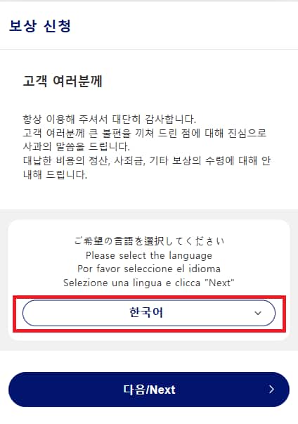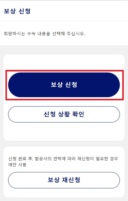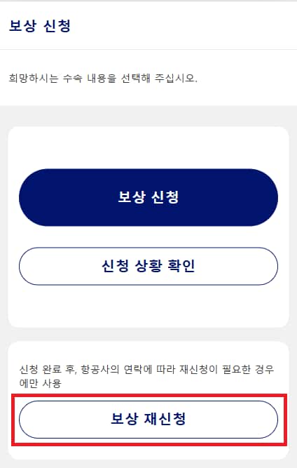 해당 안내를 받으신 고객께서는 ‘보상 재신청’에서 수속을 진행해 주시기 바랍니다.