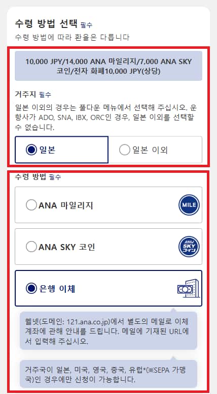 거주지와 보상 내용에 따라 수령 방법 안내가 다릅니다. 희망하시는 수령 방법을 선택해 주십시오.