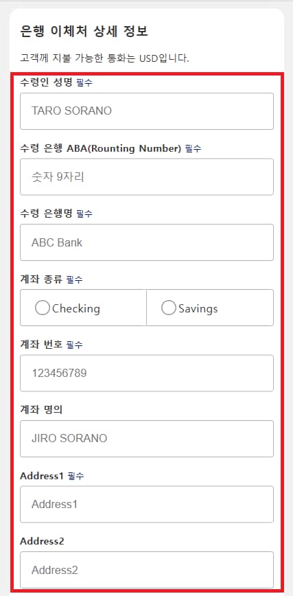 계좌 정보를 입력해 주십시오. 오류가 없는지 확인하신 후 ‘다음’을 눌러 주십시오.