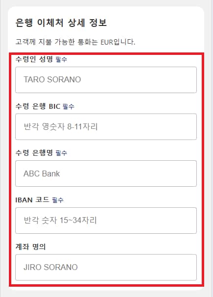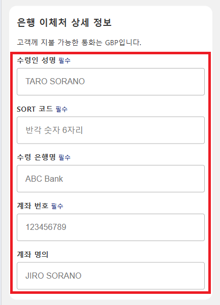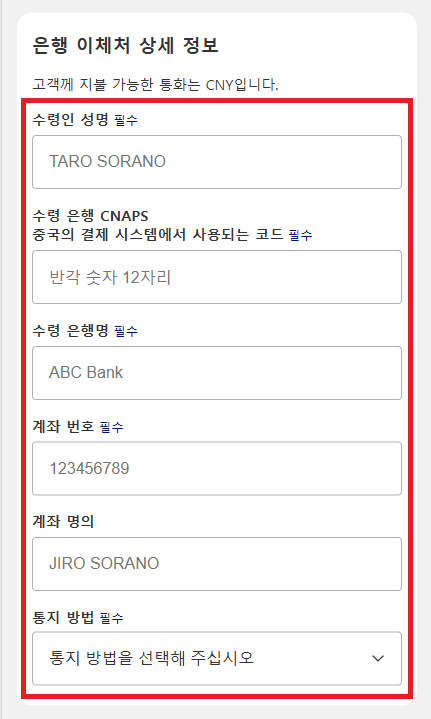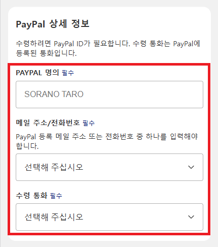 입력 내용은 아래의 수령 방법마다 다릅니다.