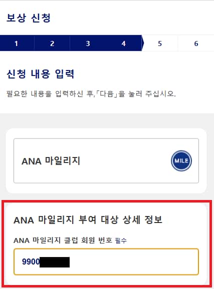 ANA 마일리지 클럽 회원 번호(10자리)를 입력해 주십시오.