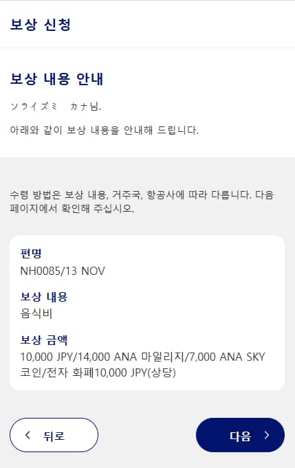 ANA에서 신청 내용 확인 후 보상 신청 시 입력하신 메일 주소로 재신청을 부탁하는 경우가 있습니다.