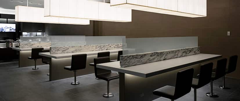 출발 전에 넓고 쾌적한 라운지에서 보내시기 바랍니다. 식사 서비스, 릴랙제이션 구역, 더 다양한 것이 있습니다.