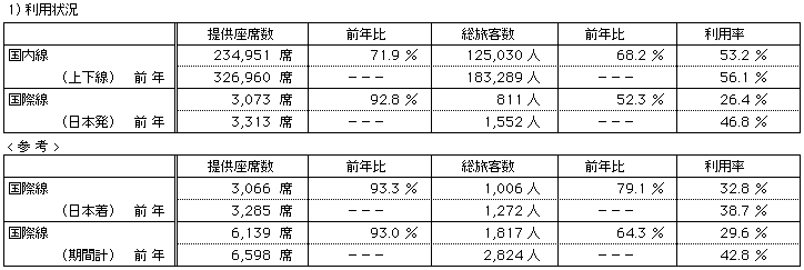ANAグループにて運航の受委託を進めており、当社機材でのANA便名でのフライトが増えたため、当期間の当社提供座席数は前年比71.9%となりました。