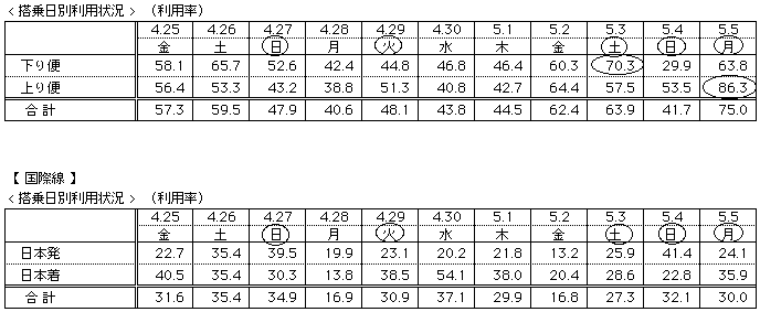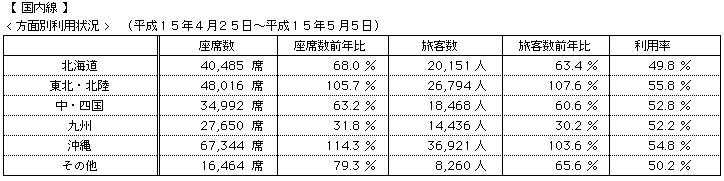 ANK 平成15年度ゴールデンウィーク期間輸送実績 ( 4/25 〜 5/5 )