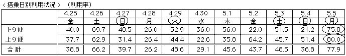 期間中のピークは、上下便共に5月5日(月)となりました。