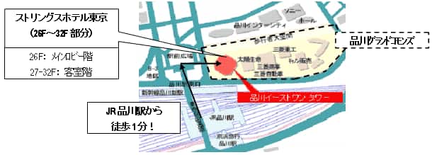 | ANAグループの株式会社エーエヌエーホテル品川(社長:稲吉 豊、本社:東京都港区)は、2003年5月20日(火)、品川駅港南口の品川イーストワンタワー(26〜32階)に「THE STRINGS HOTEL TOKYO (ストリングス ホテル 東京)」(総支配人: THE STRINGS HOTEL TOKYOより徒歩1分の品川駅は、羽田空港まで約20分、成田空港まで約70分とアクセスが大変便利です。2003年10月1日には東海道新幹線が乗り入れる新幹線品川新駅が完成予定であり、東京、新宿、横浜など主要スポットへのアクセスの良さに加え、更に利便性が高まります。 都心の一大ビジネスエリアとして変貌を遂げている「品川グランドコモンズ」*の中でも、品川駅港南口から連絡通路を通り徒歩約1分といった好立地にあり、品川駅港南エリアで唯一の高級シティホテルとして開業いたします。 |