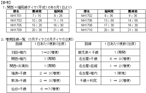 | ANAグループでは、本日3月26日(金)、6月1日(火)〜30日(水)ご搭乗分の国内線運航ダイヤの認可申請を、国土交通省に行いました。 今回の申請では、6月1日(火)ご搭乗分から、関西=福岡線を従来より1日1往復増便して1日4往復、伊丹=福岡線(1日4往復)とあわせて大阪地区=福岡線は計1日8往復とし、利便の向上を図って参ります。 さらに、関西=稚内線・女満別線はそれぞれ1日1往復の運航を再開いたします。 併せて、北海道発着路線については、増便ならびに新規就航を行います。 引き続き、ANAでは利用者の皆様に便利にお使いいただけるよう、国内ネットワークの充実を図って参ります。 |