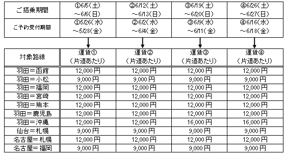 ◆設定予定期間・設定予定路線・発売(ご予約受付)期間および運賃額 |