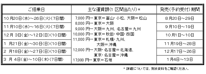 | ◎ 一部路線を除いて「リピート4回」を約5%値上げいたします。 ◎ その他の運賃については、別添資料をご確認ください。 |