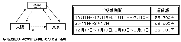 | 2004年10月1日ご搭乗分より、現行の「根室中標津ルート」、「萩・石見ルート」に加え、新たに「佐賀ルート」を設定いたします。詳細につきましては以下の通りです。 |
