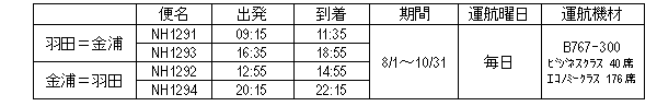 ANAでは、6月30日(木)、羽田=金浦間のチャーター便増便に伴うダイヤの届出および運賃の申請を国土交通省におこないました。 羽田空港および金浦空港は、都心部からの交通アクセスが大変便利であることに加え、旅行商品および航空券のみの購入も可能です。2004年度の搭乗率も8割を超える実績となっており、ビジネス利用のお客様にも大変ご好評をいただいております。 また、ANAセールスの「ANAハローツアー」では、増便を機に旅行商品を発売しております。 このツアーでは、往路・復路ともに午前発、午後発の便を自由に組み合わせてお選びいただけるほか、先着1,000名様に限定品の「ANAユニフォームコレクション」フィギュア1体を差し上げるキャンペーンも展開しております。