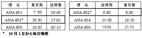 | 4.東京(羽田)=佐賀線を増便 羽田=佐賀線を、1日1往復増便し、合計で1日あたり3往復とします。 |
