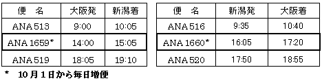 | 5.大阪(伊丹)=新潟線を増便 大阪(伊丹)=新潟線を、1日1往復増便し、合計で1日あたり3往復とします。 |