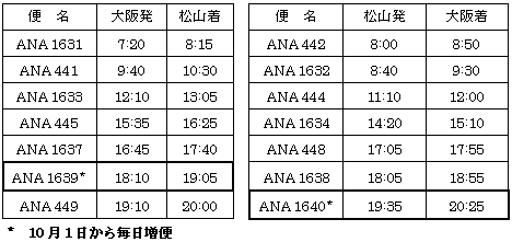 | 6.大阪(伊丹)=松山線を増便 大阪(伊丹)=松山線を、1日1往復増便し、合計で1日あたり7往復とします。 |