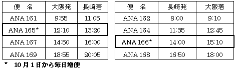 | 7.大阪(伊丹)=長崎線を増便 大阪(伊丹)=長崎線を、1日1往復増便し、合計で1日あたり4往復とします。 |