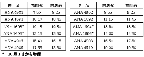 | 8.福岡=対馬線を増便 福岡=対馬線を、1日2往復増便し、1日6往復とします。 |