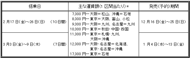 | ■設定期間、主な運賃額、発売(予約)期間 |