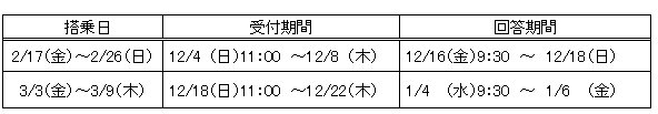 ANAマイレージクラブ会員のお客さまには、上記の受付期間よりもさらに早く受付を開始いたします。 受付開始日につきましては、別途ANAホームページ等でお知らせいたします。 |