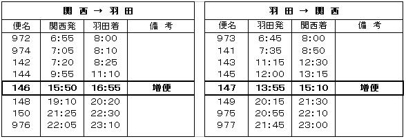 | ●関西国際空港−東京国際空港(羽田)線の増便について | |||||||||||||||