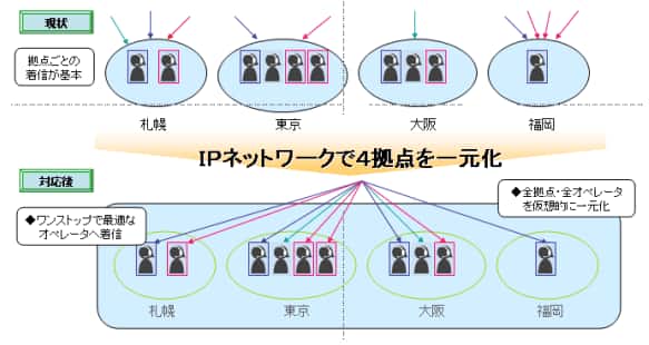国内線・国際線の予約案内センターは、全国の複数の拠点でお電話を受けており、発信される地域によってお電話のつながりやすさに違いがありましたが、IP電話交換機の導入により、地域に限定されない受付の一元化が実現され、全国の中で空きがあるオペレーターに一番早くつながるようになります。