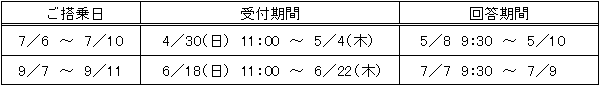 ANAマイレージクラブ会員のお客さまには、上記の受付期間よりもさらに早く受付を開始いたします。受付開始日につきましては、別途ANAホームページ等でお知らせいたします。 |