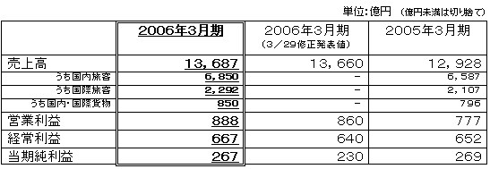 2006年3月期は、原油価格高騰による航空燃料費の増加、また不安定な国際情勢による特定路線の観光需要の低迷など、外的要因によるリスクが顕在化した1年となりました。かかる状況下においても、安全運航を基本に、各種サービスの拡充を含めた営業活動を積極的に展開し、また費用削減の徹底に努め、売上高、営業利益、経常利益において過去最高を更新いたしました。 |